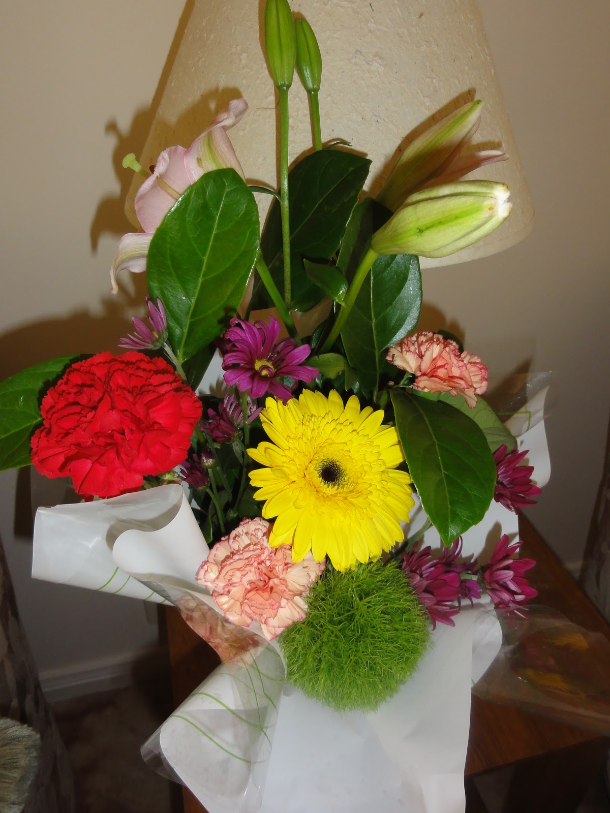 From the Lens.........flowers Jodi got me for my birthday......I took this photo then removed the red carnation as red flowers are not my favourite.